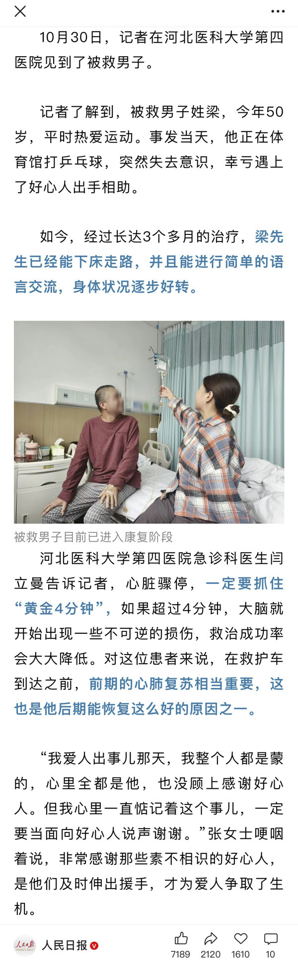 人民日报点赞!东院区急诊科力挽狂澜救治猝死患者