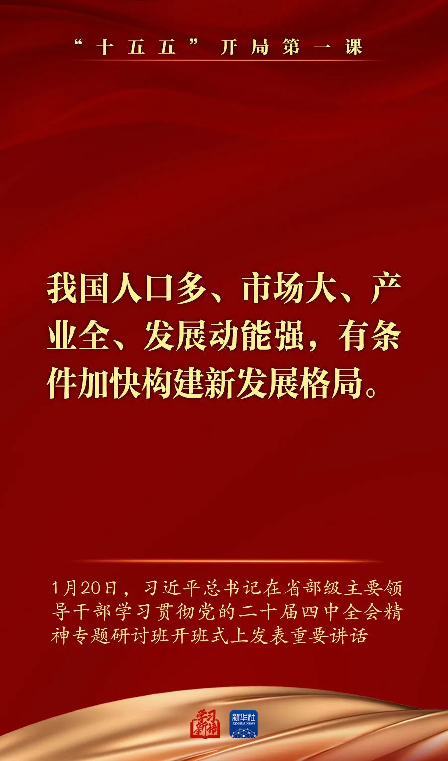 1月20日,省部级主要领导干部学习贯彻党的二十届四中全会精神专题研讨班在中央党校(国家行政学院)开班。习近平总书记在开班式上发表重要讲话强调,深入学习贯彻党的二十届四中全会精神,努力实现“十五五”良好开局。总书记讲话要点,一起学习领悟。